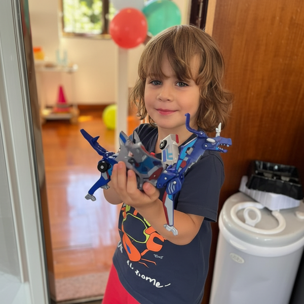 Щом количката се сблъска, тя магически се превръща във въодушевяващ малък динозавър – без сложни стъпки.