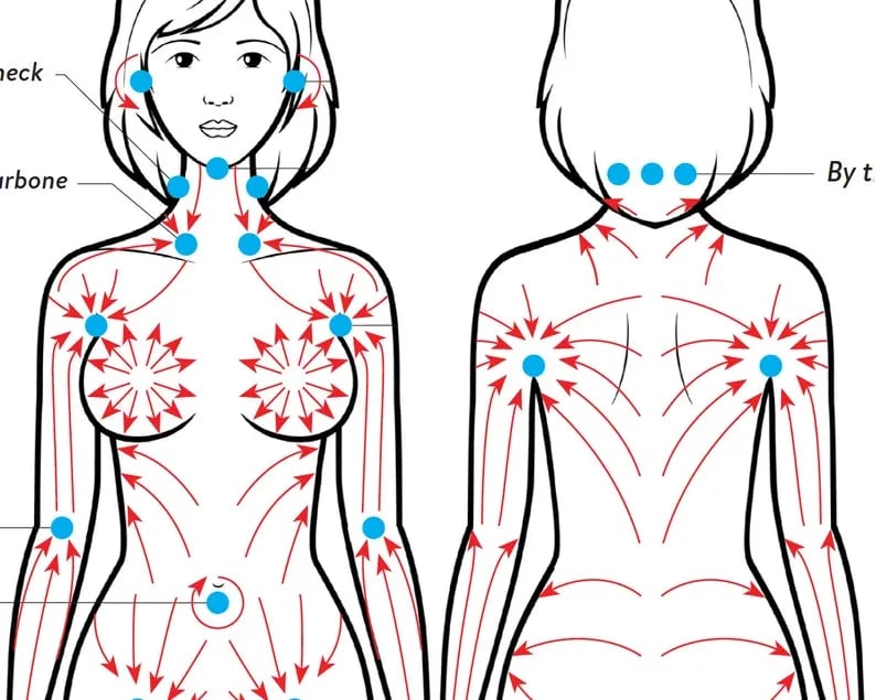 "Body brushing direction guide poster" → плакат с инструкции за посоките на четкане на тялото