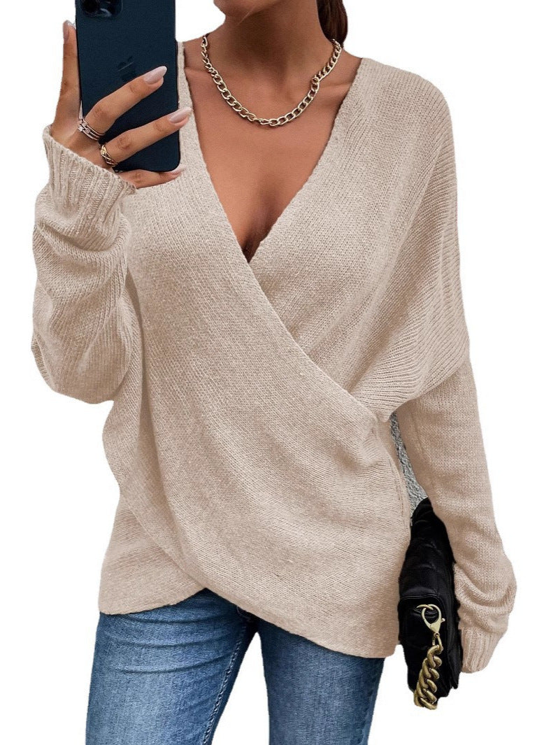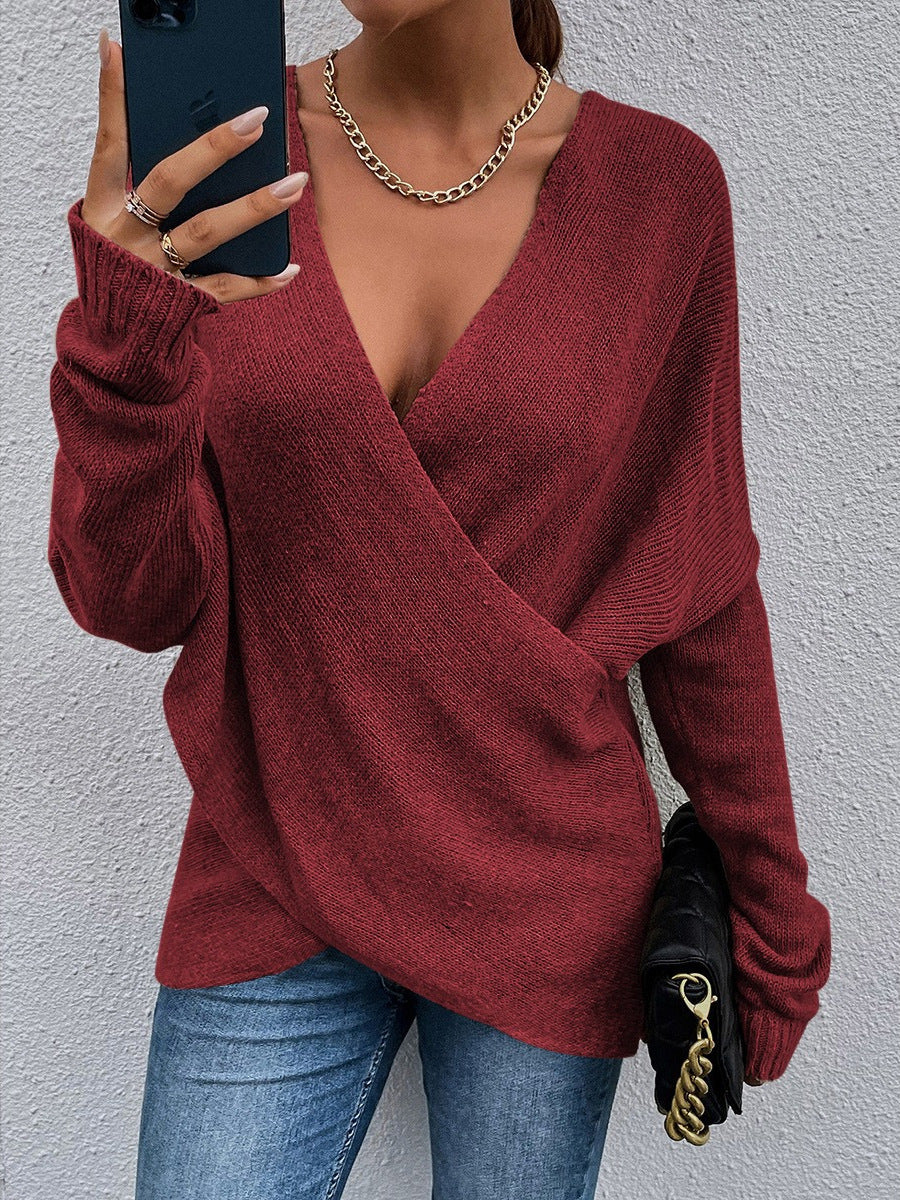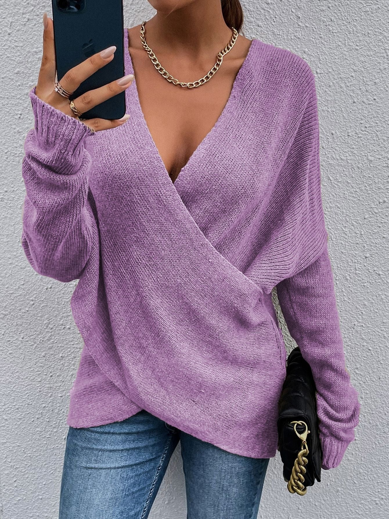 Дамски плетен пуловер, есенно-зимен, с V-образно деколте и дълги ръкави.😍Втората стока с 40% отстъпка!