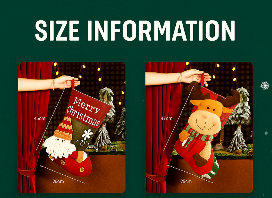 Окачете ги край камината, на парапета на стълбите или под коледното дърво, за да създадете уютна, топла и радостна празнична атмосфера. 🌟